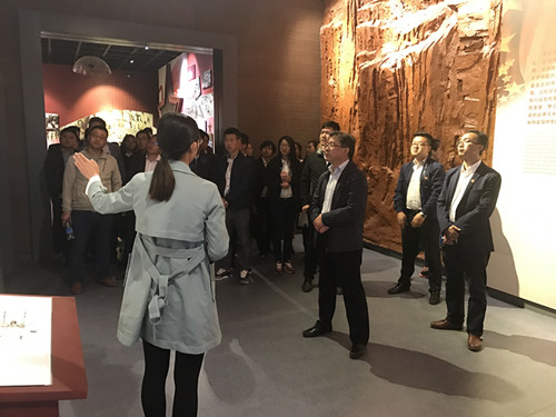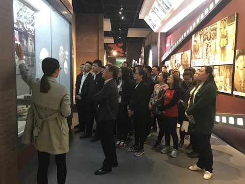 儀式結(jié)束,全體成員在紀(jì)念碑前合影留念,大家在講解員的引導(dǎo)下,參觀了《紅星照耀中國(guó)——外國(guó)記者眼中的中國(guó)共產(chǎn)黨人》圖片展館,該展館從探尋紅色中國(guó)、鏡頭里的中國(guó)革命、偉人風(fēng)采、人民軍隊(duì)、群眾武裝、延安生活,視頻播放、版畫(huà)介紹等八個(gè)方面,展示了外國(guó)記者在革命歷史年代留下的真實(shí)著作和照片等歷史資料,一張張照片、一件件檔案、一幕幕場(chǎng)景,仿佛把全體團(tuán)員帶回了那段難以忘懷的崢嶸歲月,大家紛紛表示,重溫歷史,就是要從中國(guó)共產(chǎn)黨團(tuán)結(jié)和帶領(lǐng)中國(guó)人民進(jìn)行英勇頑強(qiáng)斗爭(zhēng)的這段非凡歷程中得到深刻啟示,從而更加堅(jiān)定永遠(yuǎn)跟黨走的理想與信念,沿著革命前輩的光輝足跡,接力前行。