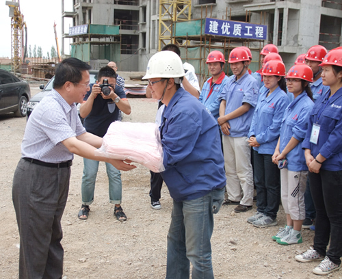 “常言說建筑是凝固的詩,這詩是我們建筑工人揮灑著辛勤汗水的鏗鏘鳴唱!”甘肅建投黨委書記宋忠慶如實(shí)說。每到一處甘肅建投領(lǐng)導(dǎo)都向在酷暑中堅(jiān)守崗位的隊(duì)員們表示親切的慰問和真誠(chéng)的感謝,并高度肯定了他們做出的巨大貢獻(xiàn)。甘肅建投正處在一個(gè)高速發(fā)展的時(shí)期,處在一個(gè)跨越發(fā)展的時(shí)期,認(rèn)為一線職工們?yōu)楦拭C經(jīng)濟(jì)及甘肅建投發(fā)展做出了建投人應(yīng)有的貢獻(xiàn)。