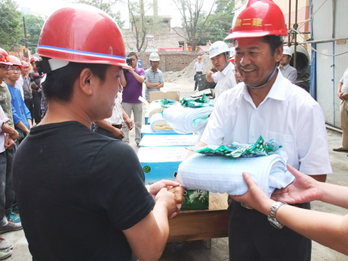 夏日炎炎,一線職工們的生產(chǎn)生活情況始終牽掛在甘肅建投領(lǐng)導(dǎo)們的心頭。8月上旬,甘肅建投副董事長(zhǎng)、黨委書記宋忠慶,黨委副書記、紀(jì)委書記張育謙,工會(huì)主席尹克云等領(lǐng)導(dǎo)同志深入一線施工現(xiàn)場(chǎng),看望了奮戰(zhàn)在烈日酷暑下的一線干部、職工群眾,并為他們送去了茶葉、毛巾等防暑降溫用品,給他們送上一份份“清涼”的問候。