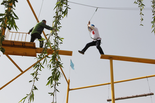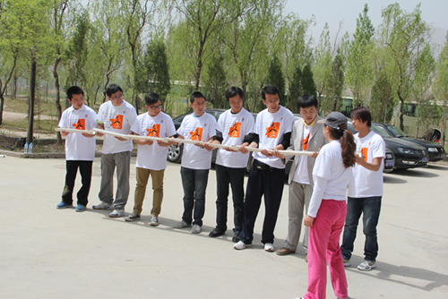 表彰大會(huì)結(jié)束后,素質(zhì)拓展訓(xùn)練活動(dòng)正式啟動(dòng)“開(kāi)營(yíng)”儀式。初到訓(xùn)練場(chǎng)地,頓覺(jué)天朗氣清,清晨的濃霧還游離在濃綠色的山上,風(fēng)過(guò)便是一陣涼爽。團(tuán)員們?cè)谶@樣的環(huán)境下對(duì)訓(xùn)練也頗增了幾分信心。開(kāi)班前,教練讓大家進(jìn)行了“愛(ài)的鼓勵(lì)”等一系列的歡快活動(dòng),旨在打破人與人之間的隔閡,建立相互信任的基礎(chǔ),營(yíng)造團(tuán)隊(duì)快樂(lè)和諧的氛圍。