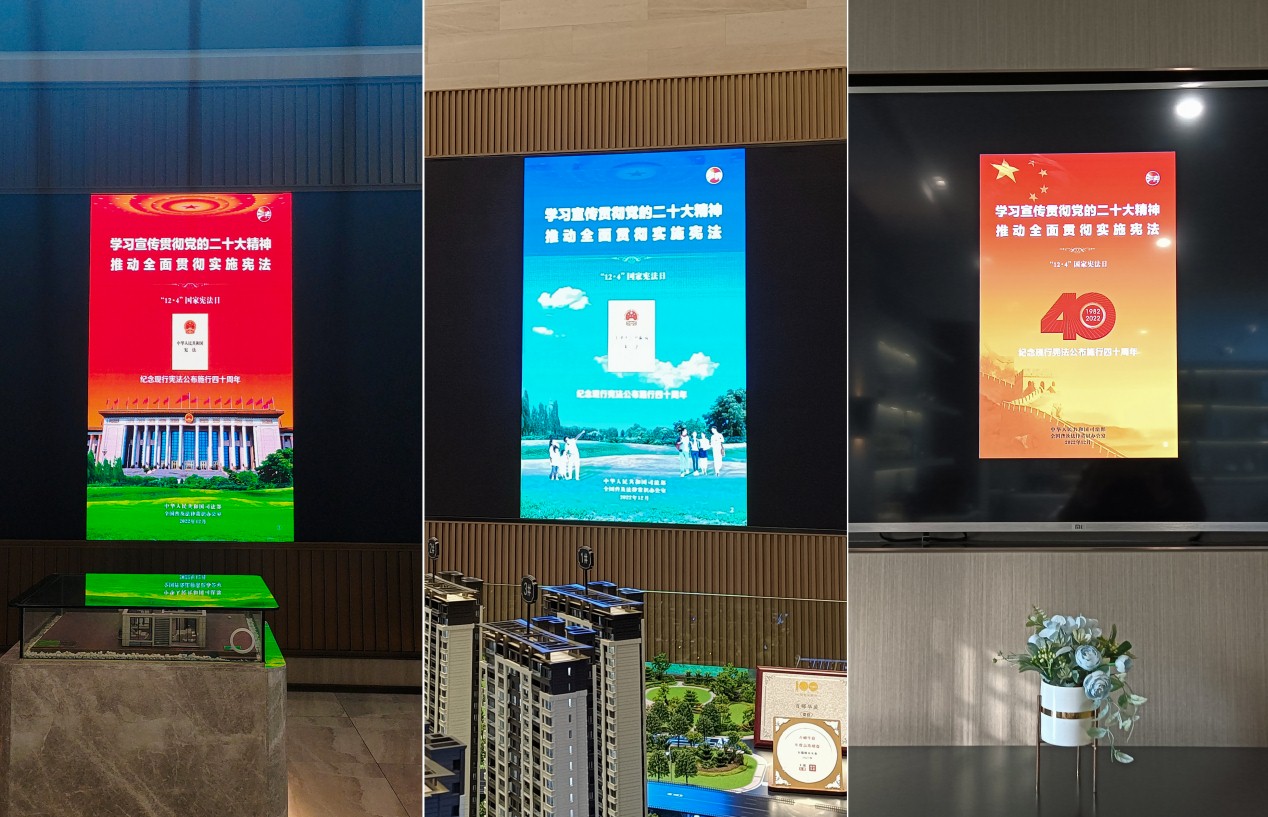 “憲”聲奪人,掀起宣傳熱潮。2022年是中國(guó)現(xiàn)行憲法公布施行四十周年,12月4日是第九個(gè)國(guó)家憲法日,本周為第五個(gè)憲法宣傳周。此次,在憲法宣傳周來(lái)臨之際,甘肅建投各出資企業(yè)發(fā)放憲法宣傳資料、懸掛憲法宣傳標(biāo)語(yǔ)、制作海報(bào)展板、憲法宣傳展架,利用宣傳欄、電子屏等陣地在公司及車(chē)間廠房、項(xiàng)目一線(xiàn)播放憲法宣傳微視頻、公益廣告,通過(guò)微信公眾號(hào)、網(wǎng)站、QQ等多次發(fā)布憲法學(xué)習(xí)的相關(guān)材料,營(yíng)造了十分濃厚的憲法宣傳氛圍。
