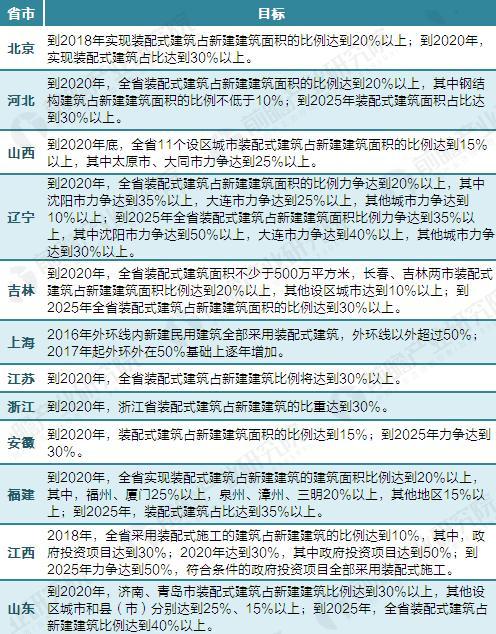 [導(dǎo)讀]截至2018年1月我國已經(jīng)有30多個省市地區(qū)就裝配式建筑的發(fā)展給出了相關(guān)的指導(dǎo)意見以及配套的措施,其中22個省份均已制定裝配式建筑規(guī)模階段性目標(biāo),并陸續(xù)出臺具體細(xì)化的地方性裝配式建筑政策扶持行業(yè)發(fā)展。