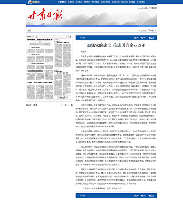甘肅日報(bào):加強(qiáng)黨的建設(shè) 推進(jìn)國有企業(yè)改革