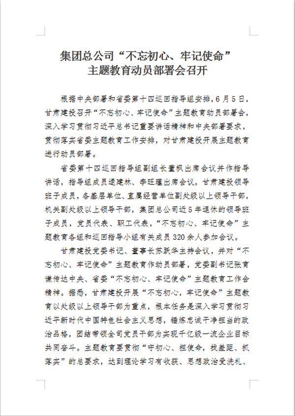 【不忘初心 牢記使命】集團(tuán)總公司“不忘初心、牢記使命” 主題教育動(dòng)員部署會(huì)召開