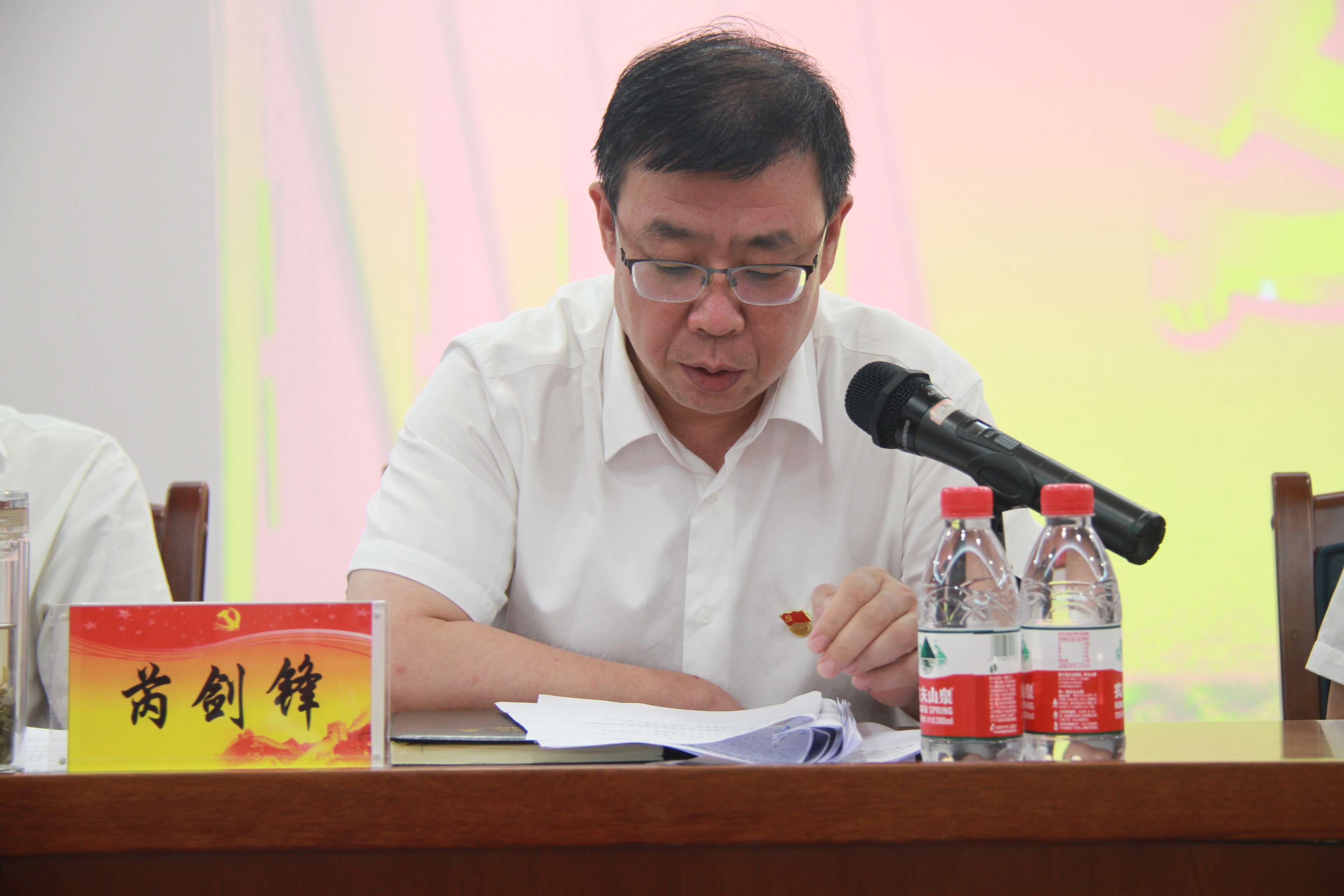 下午,公司黨委慶“七·一”表彰大會(huì)暨“不忘初心、牢記使命”主題教育推進(jìn)會(huì)在《歌唱祖國(guó)》《今天是你的生日》《不忘初心》等愛(ài)國(guó)歌曲中拉開(kāi)帷幕,黨委副書(shū)記、紀(jì)委書(shū)記芮劍鋒主持會(huì)議。